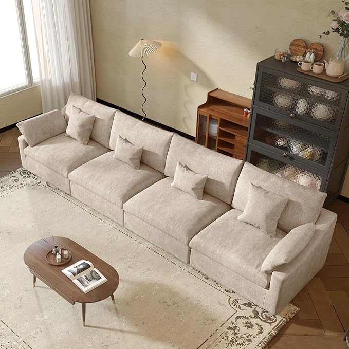 JACH Sectional Couches for Living Room, 4 Seater Cloud Sectional Couch with Deep Seat, Down Filled Modular Sofa, Covers Removeable & Washable, Sofas Furniture for Living Room, Khaki