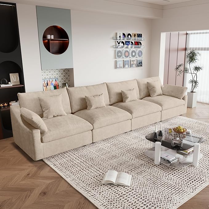 - ⛅[Comfortable Cushions]The cushion of this modular sofa is filled with down and velvet, increasing the comfort and rebound performance of the sofa cushion, bringing you a more comfortable sitting and lying feeling, allowing you to relax completely on the cloud sofa.