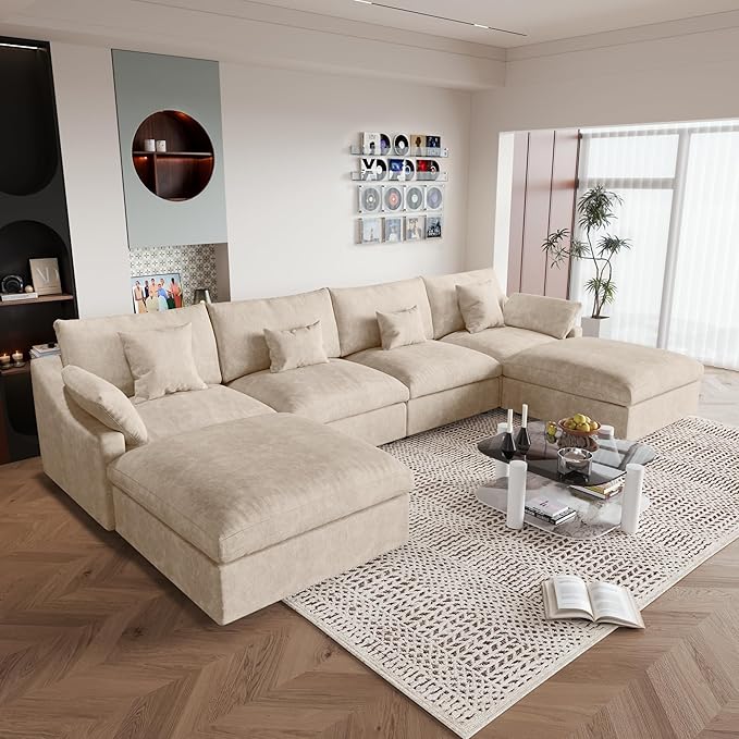 - ⛅[Comfortable Cushions]The cushion of this modular sofa is filled with down and velvet, increasing the comfort and rebound performance of the sofa cushion, bringing you a more comfortable sitting and lying feeling, allowing you to relax completely on the cloud sofa.