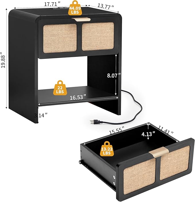 - 【Convenient Charging Station】Equipped with USB ports and power outlets, this bedside table makes device charging simple and organized—ideal for modern bedrooms and shared spaces like dorms.