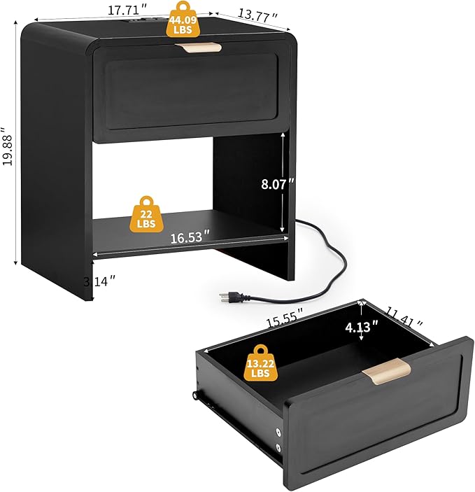 - 【Durable Structure with Stable Base】Built from sturdy wood and supported by reinforced metal legs, this nightstand provides a stable base and holds up to 50 lbs—designed for everyday functionality and durability.
