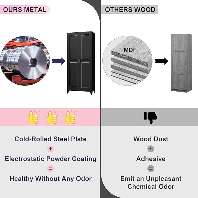 - Safe Anti Tipping Design: The back panel of the food pantry cabinet is equipped with 2 holes, you can use screws to fix the metal storage cabinet to the wall, unlike other cabinets. No dangerous tipping even if there are curious kids around. Ensure maximum stability and safety