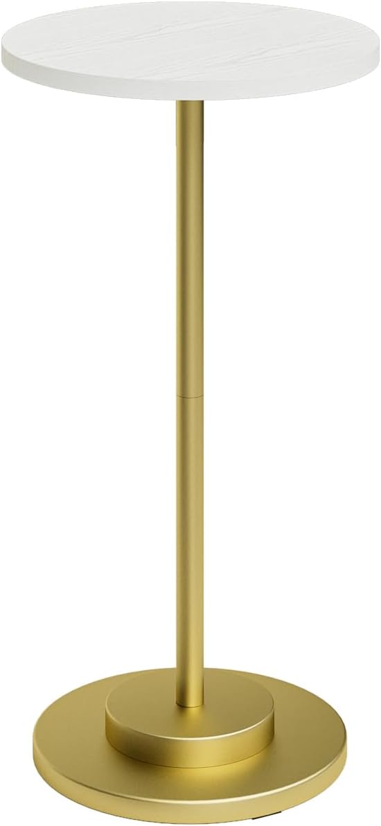 Masupu Drink Table, Round Side Table for Small Spaces, Pedestal Side Table, Small End Table with Metal Base, for Living Room, Bedroom, Bathroom, White Gold