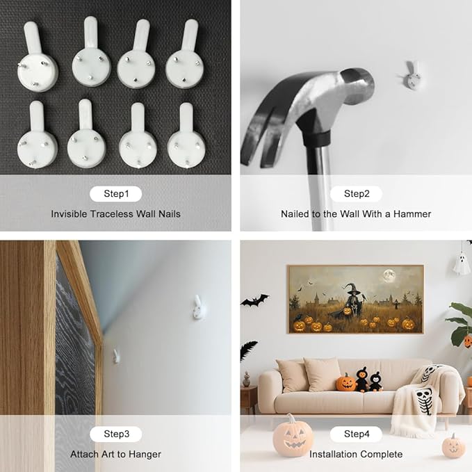 - [Perfect Decoration] This witchy and pumpkin wall decor is high definition and simple tones. Whether you want to decor living room, bedroom, bathroom, dining room, hallway, kitchen, guest room, basement, party,hotel or office, this wall decor will integrate effortlessly, enhancing any area you can envision.