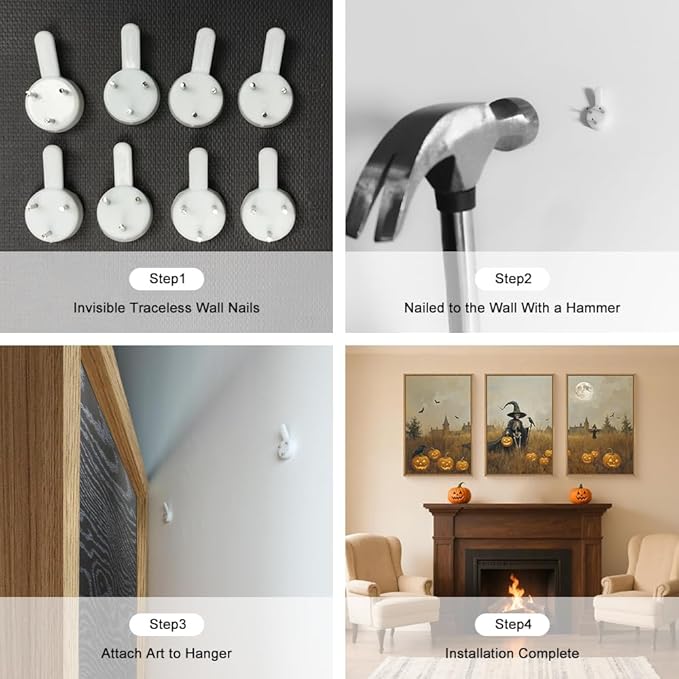- [Perfect Decoration] This witchy and pumpkin wall decor is high definition and simple tones. Whether you want to decor living room, bedroom, bathroom, dining room, hallway, kitchen, guest room, basement, party,hotel or office, this wall decor will integrate effortlessly, enhancing any area you can envision.