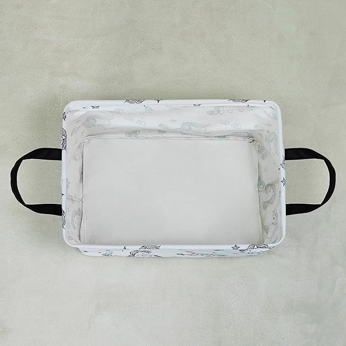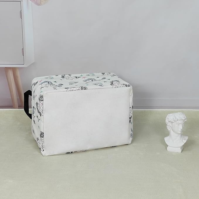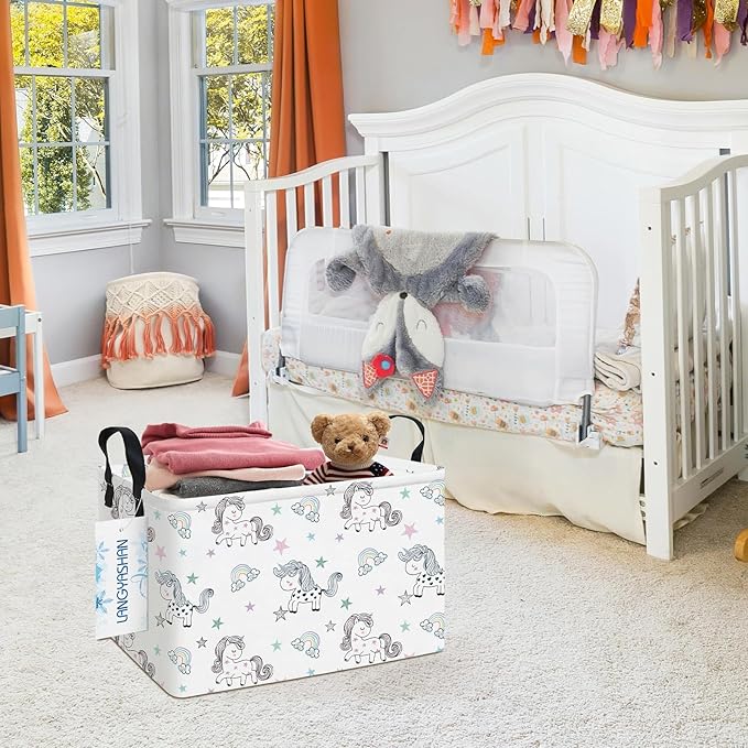 LANGYASHAN Rectangular Storage Bin Collapse Canvas Fabric Cartoon Storage Basket with Handles for Organizing Home Kitchen Boys and Girls Toys Office Closet Shelf Baskets (Rec Rainbow Unicorn)