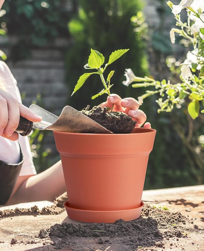 - 【Excellent Drainage System and Matching Tray】The porous drainage design of this plastic plant pots solves the drainage problem,and the small holes of arranged at the bottom can ensure that the drainage system will not be blocked and it also will not cause soil leakage.And pots for plants are provided a removable tray to collect excess water without worrying about leaks and damage to the floor,perfect for indoor use.