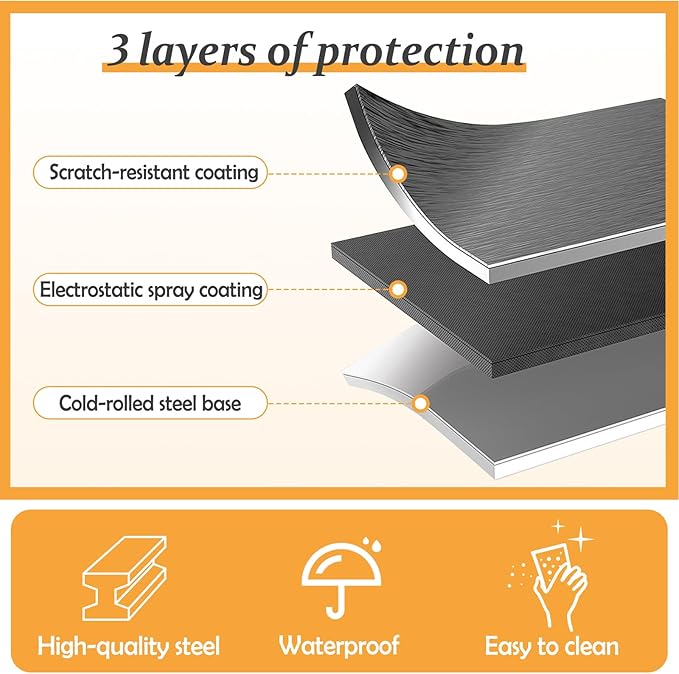 - 【Sturdy and Durable】Kitchen pantry storage cabinet is made of cold rolled steel, metal cabinet is sturdy and durable, not easy to break, while using electrostatic powder coating technology, metal fully clad; waterproof, wear-resistant, high hardness, not easy to corrode, easy to clean, it is a preferred choice as a bathroom and kitchen storage cabinets