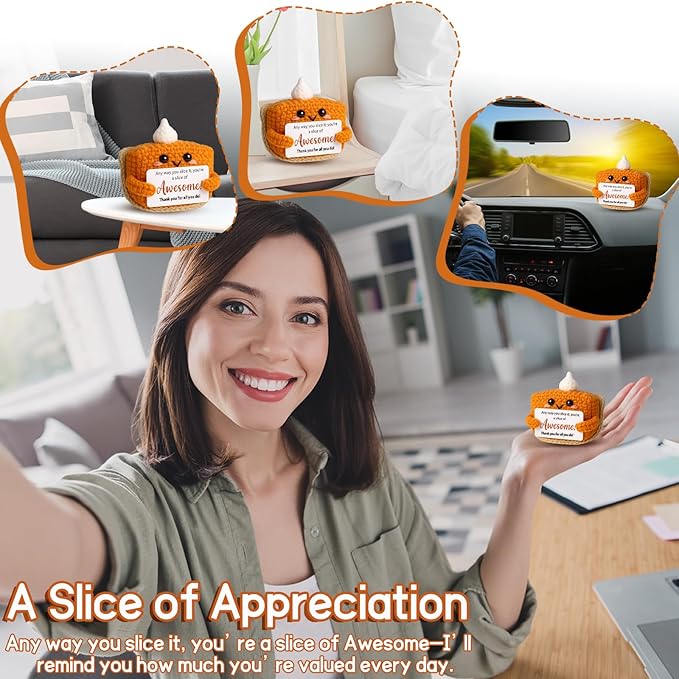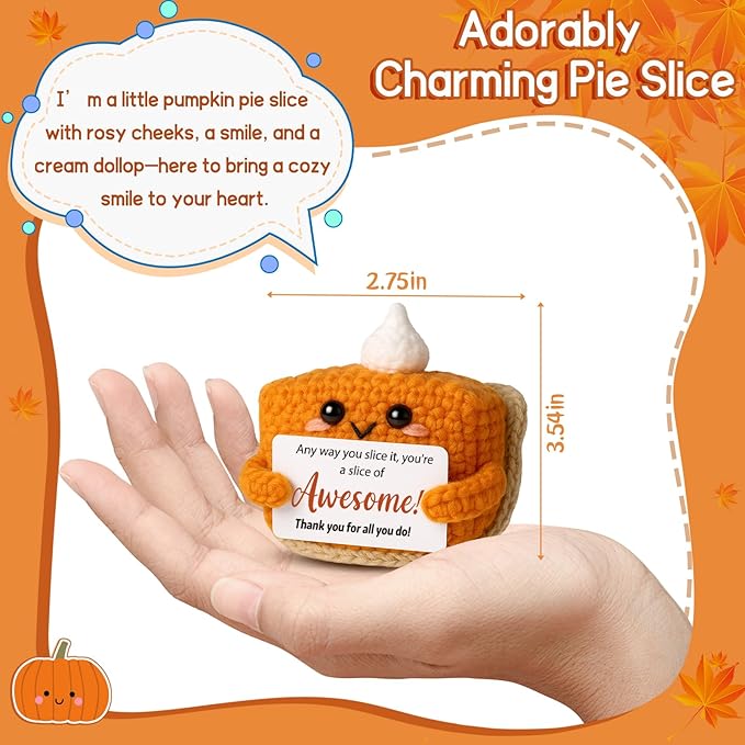 - Slice of Awesome Thank You Gift Handcrafted crochet pumpkin pie with encouraging words card — "Any way you slice it, you're a slice of Awesome!" — can be carried everywhere, giving you positive energy at any time. the perfect way to show your appreciation and gratitude.