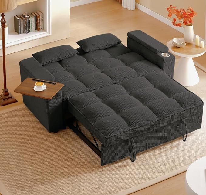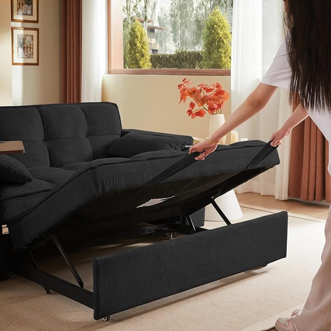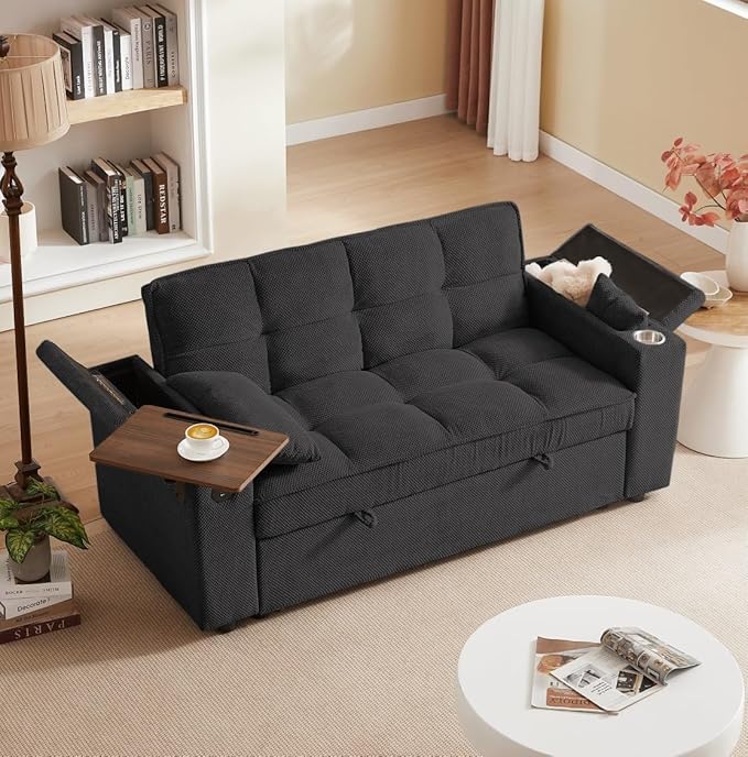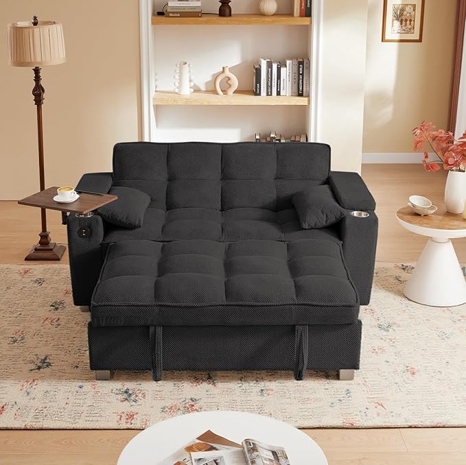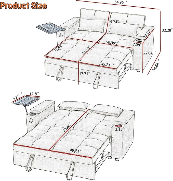 - 【3 in 1 Functional Armrest】 The innovative sofa sleeper features two built-in charging ports (2 USB-A, 1 Type-C), allowing you to conveniently charge your electronic devices.The cup holders, enjoy leisure life at your fingertips. Hidden storage space under armrest, perfect for remote controls or books
