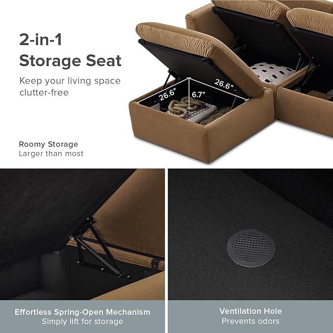 - Ample Hidden Storage for a Tidy Home: Keep your living room clutter-free with generous built-in storage beneath the seats. It’s perfect for stashing blankets, pillows, or other everyday items, ensuring everything you need is always within reach—while staying out of sight