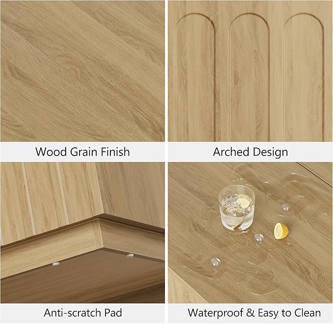 - 【Minimalist Modern Design】This modern coffee table perfectly combines boho aesthetics with practical design to transform your living space. Whether in a living room, home office or apartment, it can add a touch of sophistication. The streamlined arched design and wood grain texture create a stylish, timeless look that fits perfectly into any home decor