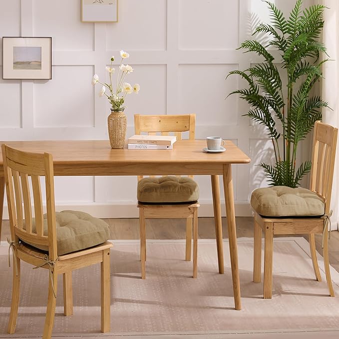 Chair Cushions for Dining Chairs, Dining Chair Cushions, Tufted Indoor Chair Pads with Ties & Non Slip Backing, Seat Cushions for Kitchen Chairs 16.5” x 16.5” x 3.5”, Set of 6, Khaki
