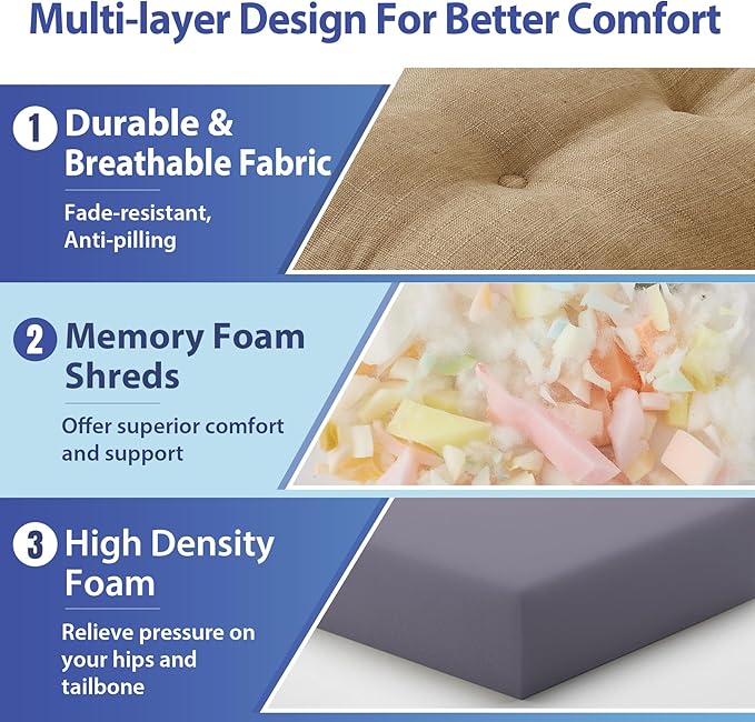 - 【Premium Memory Foam Support】: Designed with high-density memory foam for long-lasting support and comfort, our dining chair cushion offers superior comfort and support, relieving pressure on your hips and tailbone during extended seating