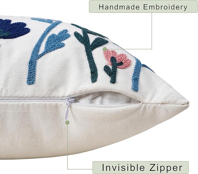 - 【HIGH QUALITY EMBROIDERED PILLOWCASE】: Floral Embroidered Pillowcoves is Made of 100% Natural cotton canvas, the Fabric is Comfortable and Breathable,The fabric is gentle on the skin, making it perfect for lounging,Comes with a Floral Embroidered Design Instead of a Print, Includes One Pillowcase (18" x 18" / 45 x 45 cm) without Filler.