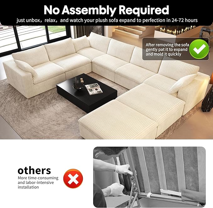 - No Assembly Required:Say goodbye to assembly stress. Simply unpack, lightly pat the pieces, and allow the couch to regain its full shape within 72 hours. Enjoy a hassle-free setup and the immediate comfort of your new sofa.