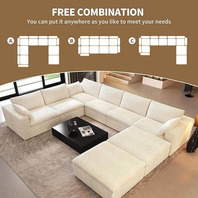 - Free Combination:Our modular sectional cloud sofa can be used not only as a U-shaped or L-shaped sofa, but also as a sleeper sofa bed for your home.Each section is movable and combinable,Adapt to any space, Provides large deep seat,You can put it anywhere as you like to meet your needs, make your own style.