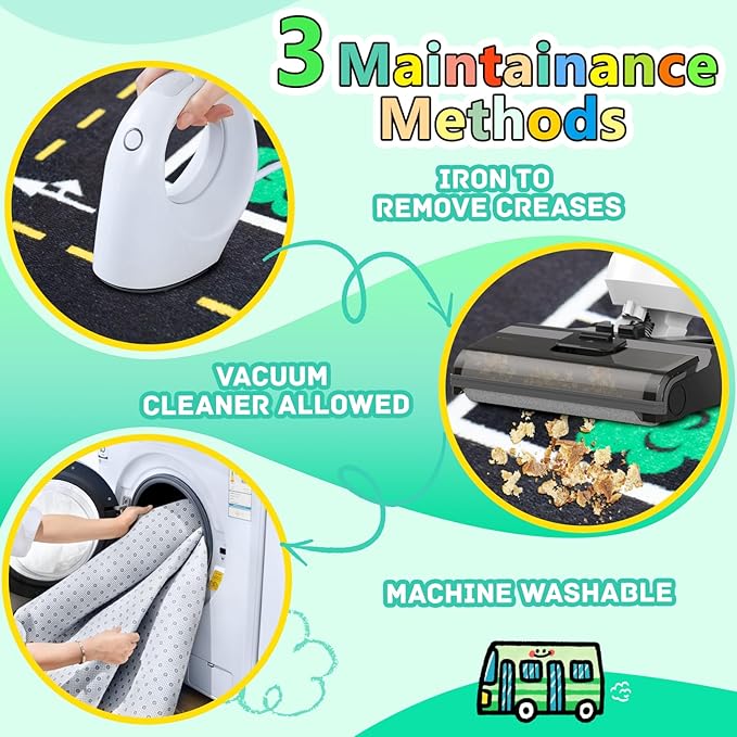 - [About Creases & Thickness]Due to vacuum package, the road map rugs for kids may feel thinner and have wrinkles after right unpacking.Please don't worry,it will take 3 to 7 days for the kids rug to regain its original shape.You could also use a steam iron to smooth out creases caused by shipping folds