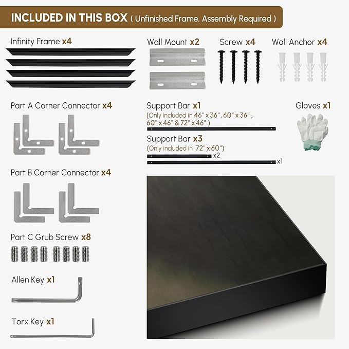 - Assembly Required: The artwork comes with the frame components unassembled. Don¡¯t worry - setup is straightforward and tool-friendly. For best results and accurate alignment, we recommend two people to ensure a smooth assembly and a stable, secure wall mount.