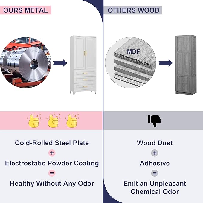 - Long Term Use and Easy Cleaning: This metal pantry cabinet features rust-resistant powder-coated finish that ensures long-lasting use in kitchen or bathroom. Easy to clean and resistant to stains and fingerprints, it is a practical choice for busy households