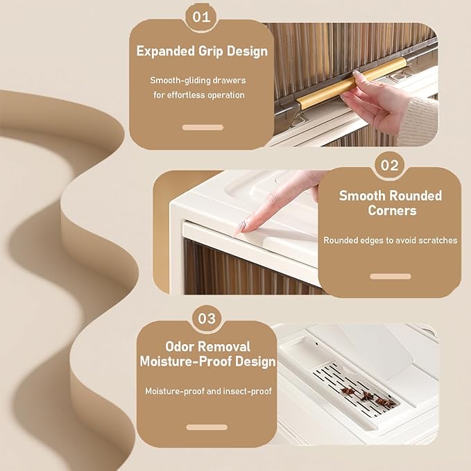 - ๐๐ซ๐๐ฐ๐๐ซ-๐๐ญ๐ฒ๐ฅ๐ ๐๐๐ฌ๐ข๐ ๐ง๏ผUnlike traditional door-opening designs, this storage bin innovatively adopts a drawer-style design for effortless access, with integrated sliding rails that protect floors and wardrobes from scratches.