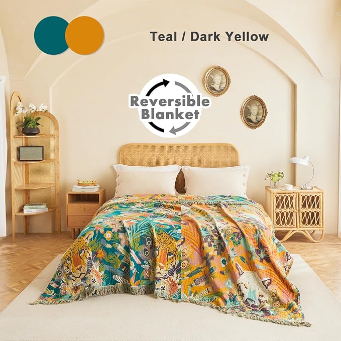 MSGKV Throw Blanket for Couch Bed Cotton Muslin Breathable Leopard Animals Twin Size Blanket 60"x80" for All Seasons Lightweight Farmhouse Blankets