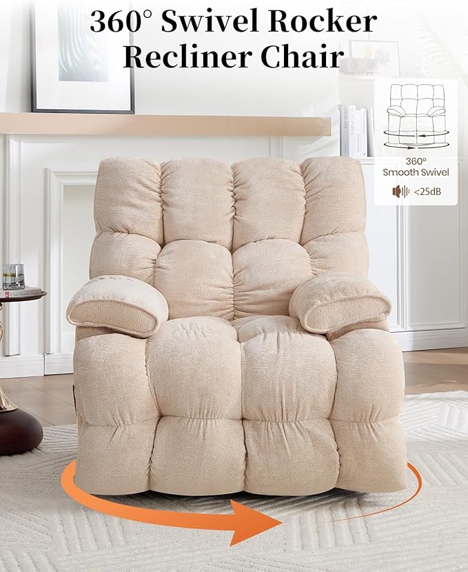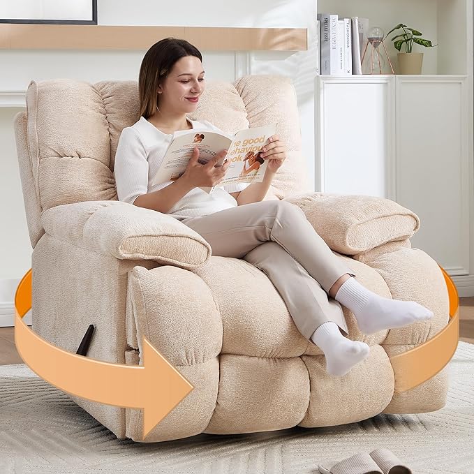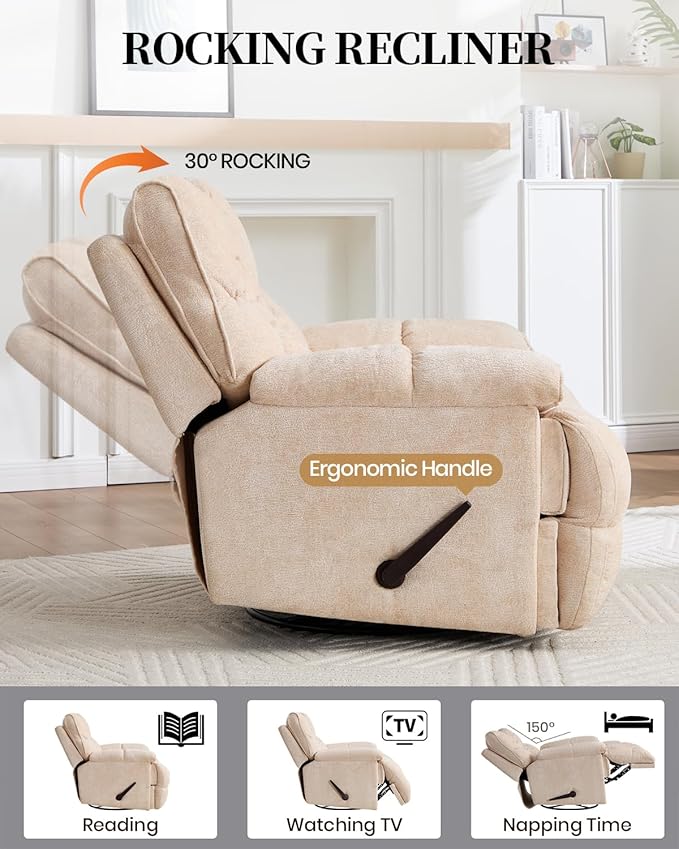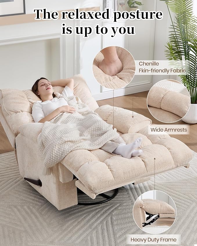 Oversized Recliner Chair Manual Swivel Rocker Recliner for Living Room Chenille Overstuffed Nursery Reclining Sofa Chair Rocking Recliners for Adults 400lbs (Manual, Beige)