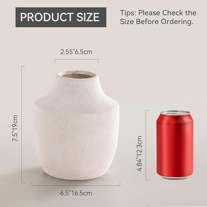 - 【Vase For Multiple Home Decor Styles】You can use this farmhouse vase enhance the beauty of room by decorating your living room, bookshelf, fireplace, entryway table with these off-white vases. The mini vase is versatile and suitable for a wide range of home decor styles such as classic, traditional, farmhouse, vintage, minimalist or bohemian.