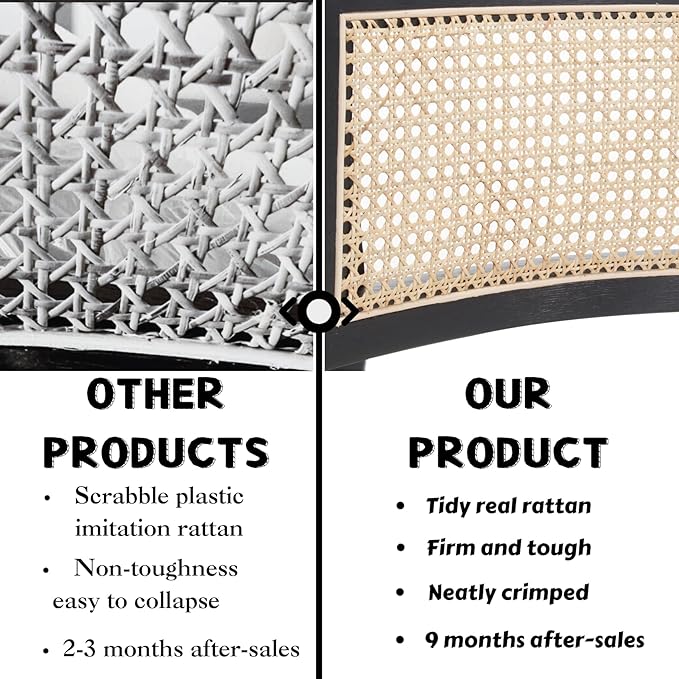 - Floating Back Design: The open-weave rattan back and minimalist frame make this rattan accent chair ideal for boho, mid-century or Scandinavian spaces. Walnut wood legs contrast beautifully with natural fibers, elevating kitchen tables or home office