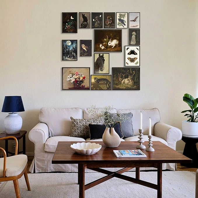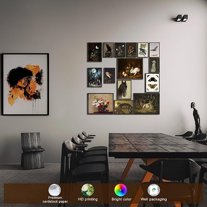 - 🖤 Gothic-Inspired Wall Art Set: This curated collection includes: 3 prints in 8x10 inches 4 prints in 5x7 inches 5 prints in 4x6 inches From moody animals to enchanting nature themes, these dark cottagecore prints infuse your room with forest magic, gothic elegance, and whimsical charm.