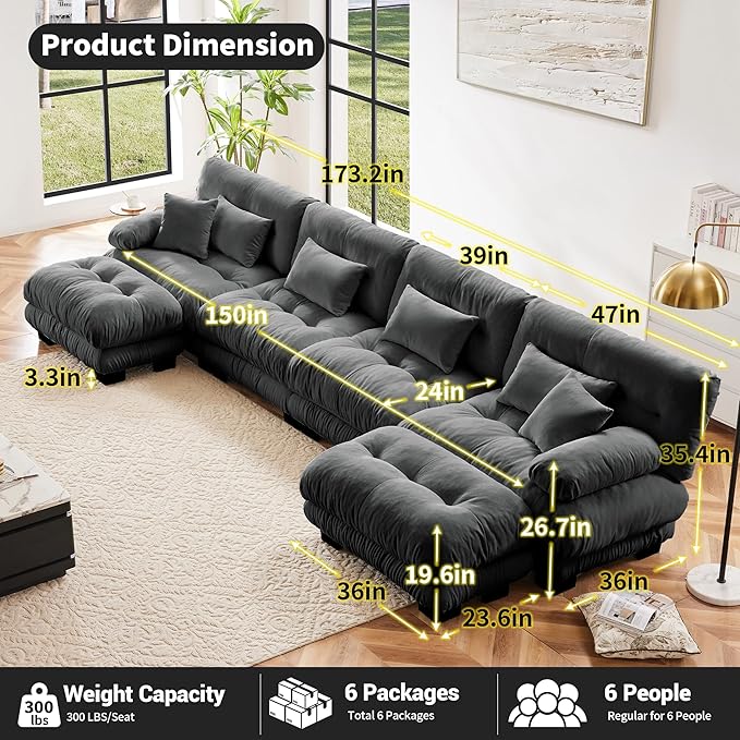 - 【Throw Pillow Included】Each seat of the deep seat sectional sofa is equipped with a matching pillow, providing a cohesive and stylish look while ensuring every moment spent on it is comfortable and supported