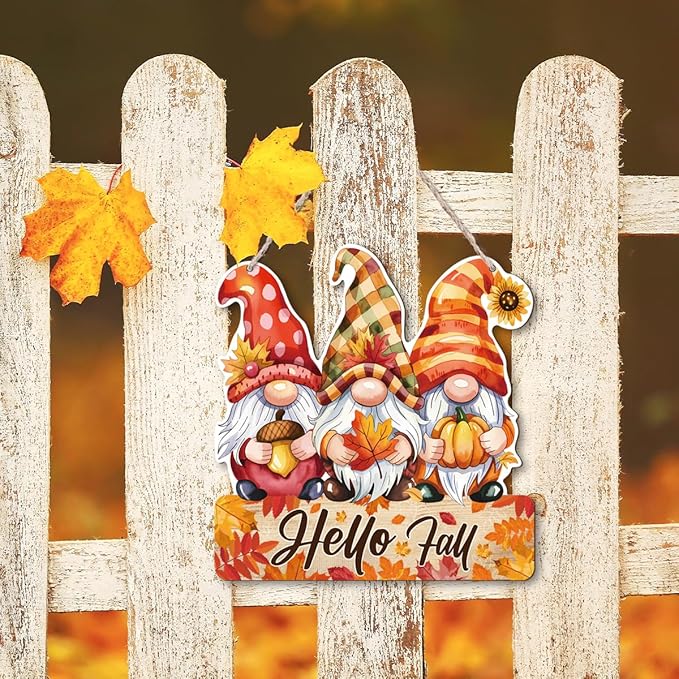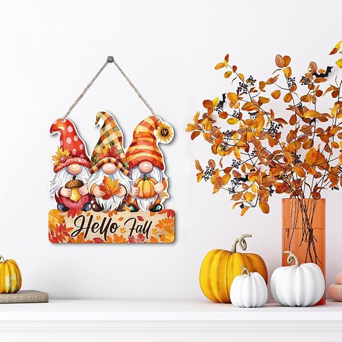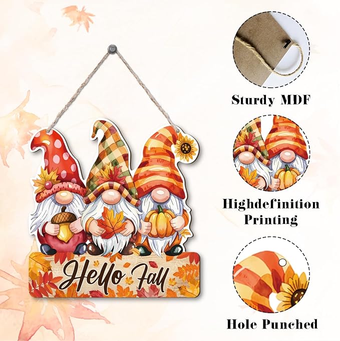 Hello Fall Wood Hanging Gnome Decoration, Autumn Wooden Signs, Rustic Thanksgiving Decoration, Home Interior And Exterior Decor, Autumn Harvest Thanksgiving Home Decor
