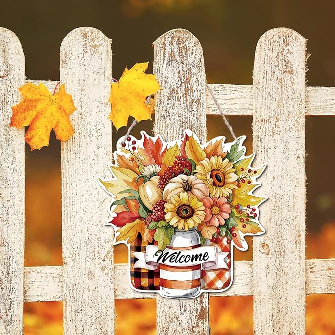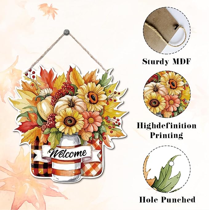Thanksgiving Welcome Door Sign Pumpkin Hanging Decor Fall Wooden Sign Autumn Decorations, Outdoor Farmhouse Porch, Autumn Harvest Thanksgiving Home Decorations, Housewarming Gift