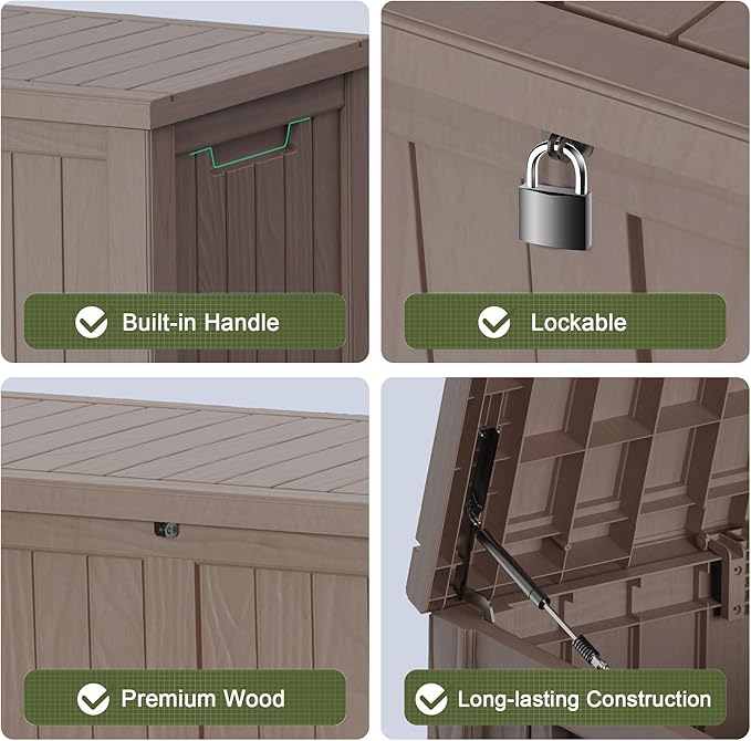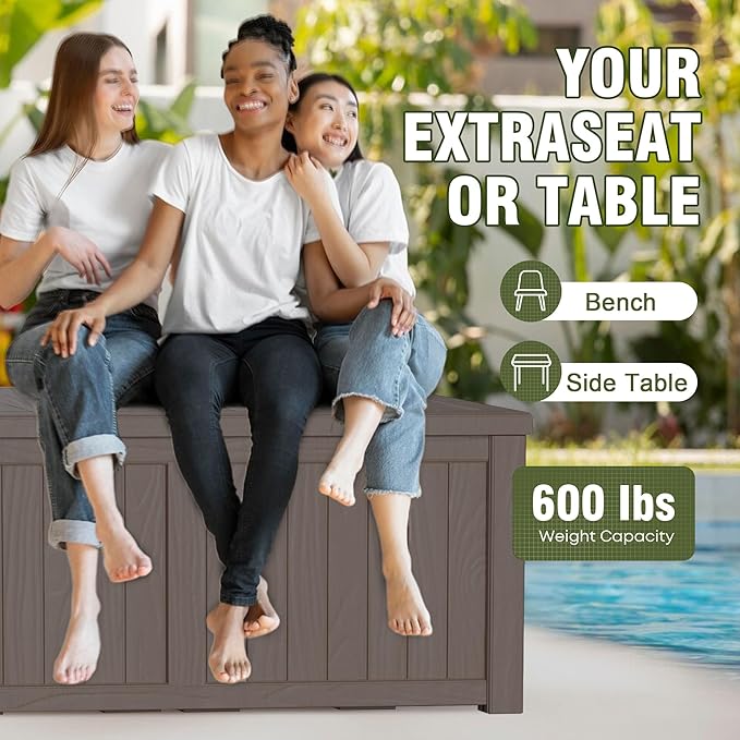 - Multipurpose Patio Storage Bin: Designed for versatility, it is ideal for storing outdoor cushions, garden tools and pool accessoriesto keep your outdoor space neat and tidy. It is suitable for a variety of uses, such as a side table or outdoor storage bench.