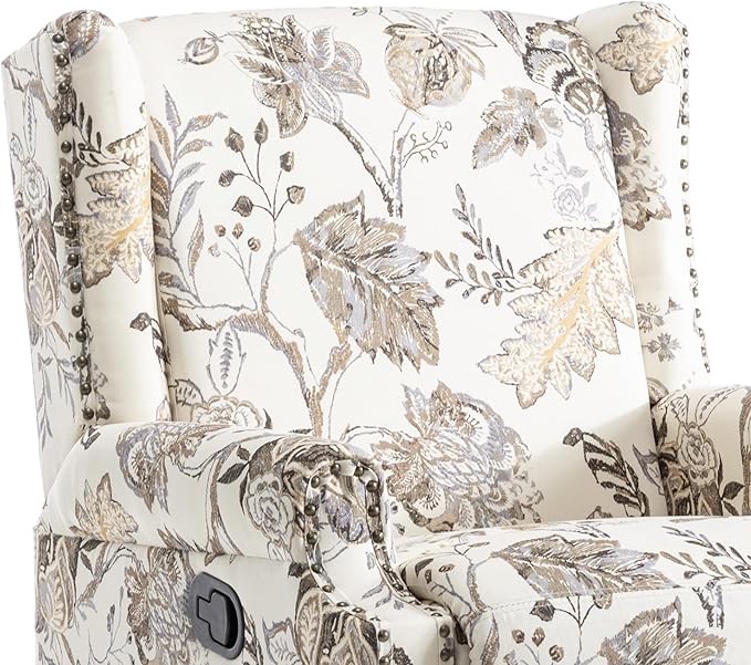UIXE Swivel Rocker Manual Recliner Chair, Wingback Swivel Glider Fabric Nursery Reclining Sofa Chair, High Back Upholstered Arm Chair for Living Room Bedroom - Beige Plants