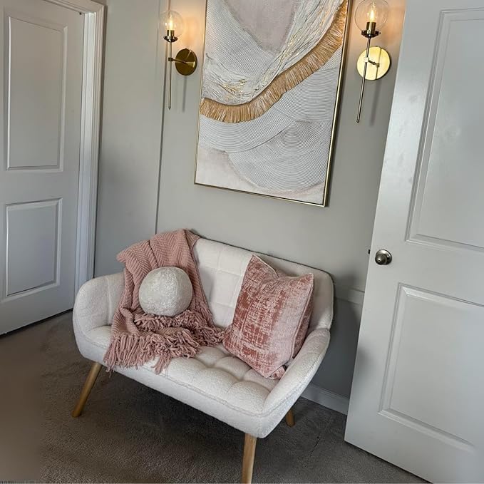 48”Small Loveseat Sofa, Modern Sherpa Upholstered Mini Couch 2-Seater Fluffy Love Seat with Quilting Backs and Wood Legs for Living Room, Bedroom and Small Space, White