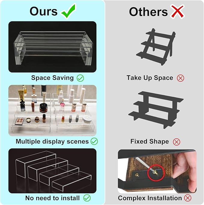 - 【Wide-Range of Uses】These acrylic shelves could be used for display pop figures,cupcakes, jewelry,perfumes,skincare products and retail goods etc. It could be a food stands for display party,or food risers for buffet table,or display risers for vendor events.