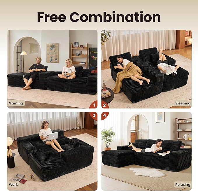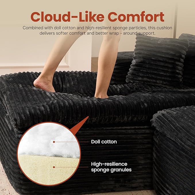 - No Assembly Required:Escape the typical furniture setup hassle with our modular cloud lounge. Simply unbox all parts and lightly tap each segment to boost its springiness and poof, bringing it back to its photogenic glory. Complete revival may take up to around 72 hours. Delight in the ease of a no-assembly nirvana!