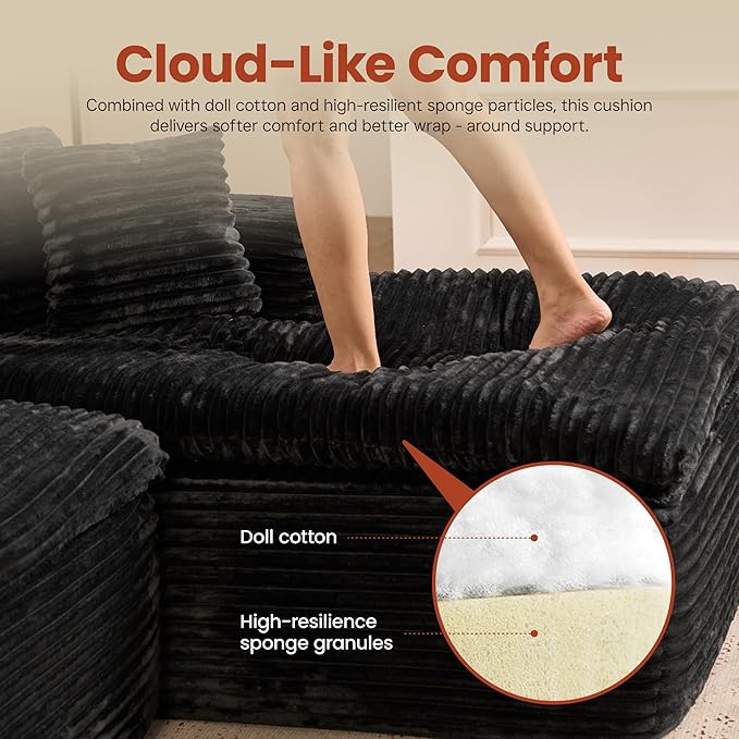 - No Assembly Required:Escape the typical furniture setup hassle with our modular cloud lounge. Simply unbox all parts and lightly tap each segment to boost its springiness and poof, bringing it back to its photogenic glory. Complete revival may take up to around 72 hours. Delight in the ease of a no-assembly nirvana!