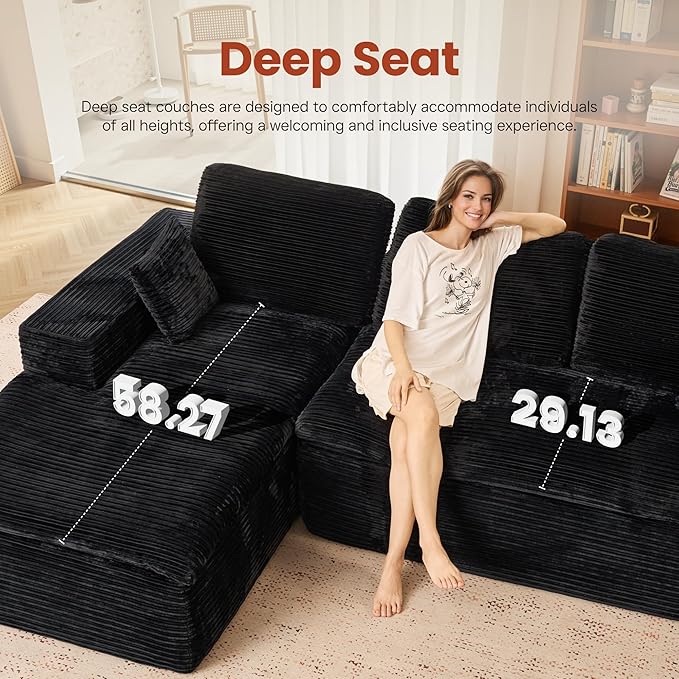 - No Assembly Required:Escape the typical furniture setup hassle with our modular cloud lounge. Simply unbox all parts and lightly tap each segment to boost its springiness and poof, bringing it back to its photogenic glory. Complete revival may take up to around 72 hours. Delight in the ease of a no-assembly nirvana!