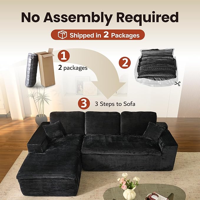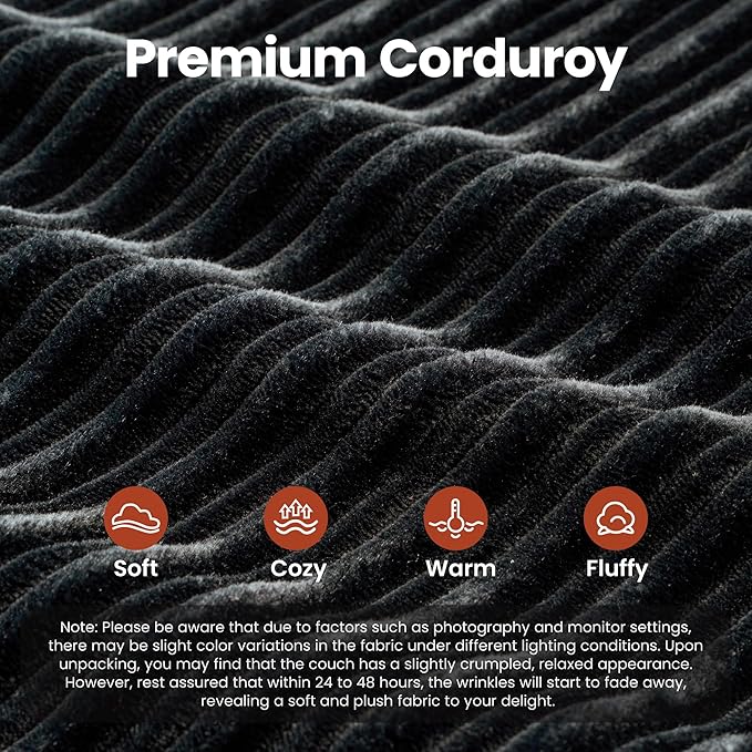 - Corduroy Fabric:Experience the lavish comfort of our enhanced corduroy fabric, offering unmatched softness and warmth. Its impressive durability and stain-fighting prowess keep your sofas looking fresh and lively. With a variety of color choices, our corduroy chaise sofa lets you showcase your unique style while adding irresistible charm to your space