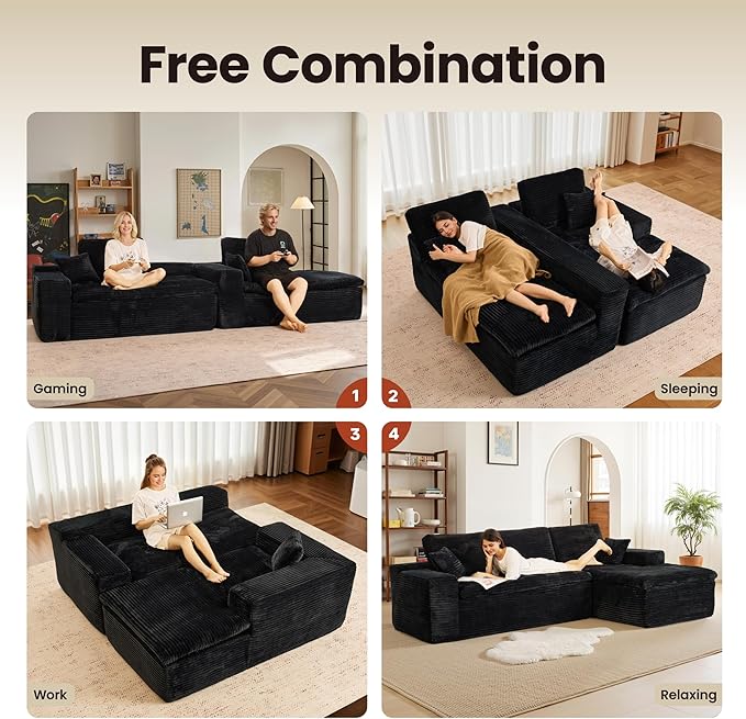 - Comfy Chaise Couch:Bask in unparalleled luxury with our interchangeable sofa collection, which embodies a spacious, cloud-like seating sensation. Revel in supreme ease with our couch with 70" lounge chaise, meticulously crafted from high resilience foam architecture and coil spring reinforcement