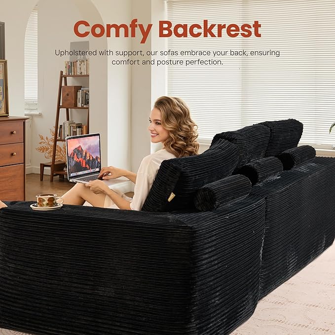 - Corduroy Fabric:Experience the lavish comfort of our enhanced corduroy fabric, offering unmatched softness and warmth. Its impressive durability and stain-fighting prowess keep your sofas looking fresh and lively. With a variety of color choices, our corduroy chaise sofa lets you showcase your unique style while adding irresistible charm to your space