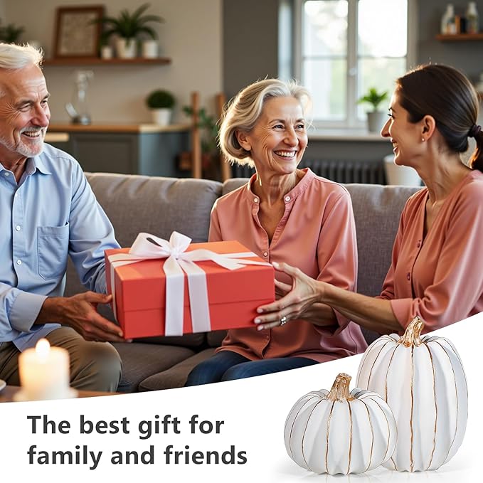 - COLORFUL: Shop with confidence knowing that we stand behind our products. The fall pumpkins decorations are colored in white sliver body and gold stem with gold-lined frame, adding a touch of autumn charm and warmth to any space.