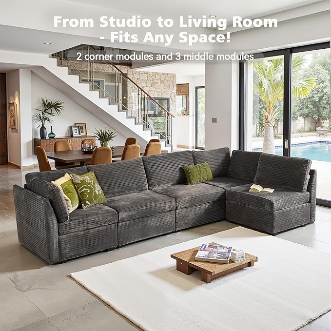 - Spacious Furniture:Sturdy solid wood frame, high-end breathable Plush corduroy fabric, filled with high rebound sponge, making this modular sectional sofa beautiful and comfortable, it can be a perfect match for your living room, bedroom, home office, etc.
