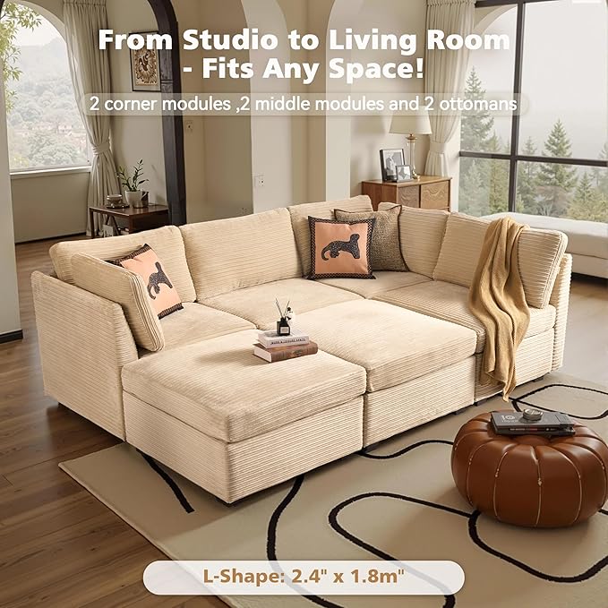 - Spacious Furniture:Sturdy solid wood frame, high-end breathable Plush corduroy fabric, filled with high rebound sponge, making this modular sectional sofa beautiful and comfortable, it can be a perfect match for your living room, bedroom, home office, etc.