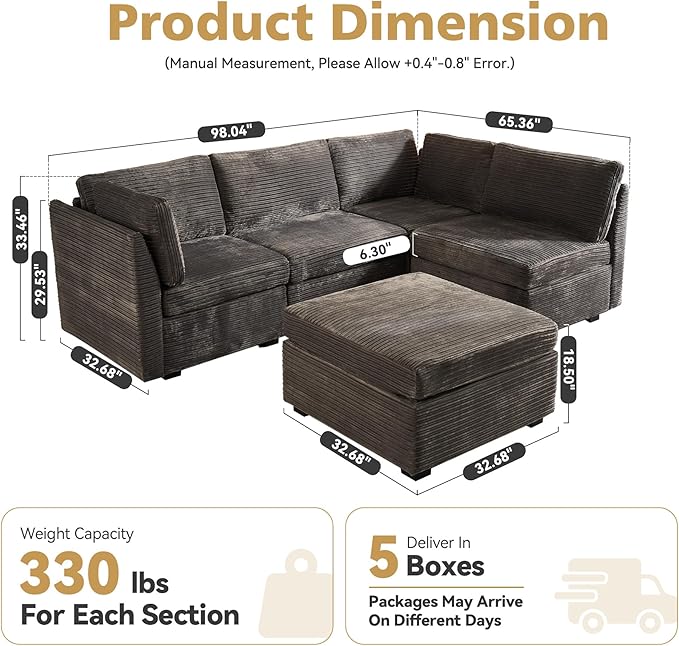 - Special Feature : DIY, Deep Seat, Modular, Plush Corduroy, Sectional