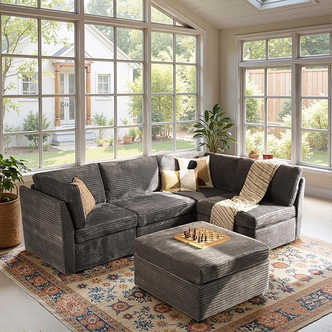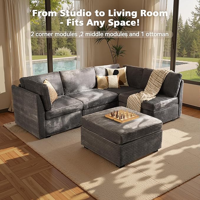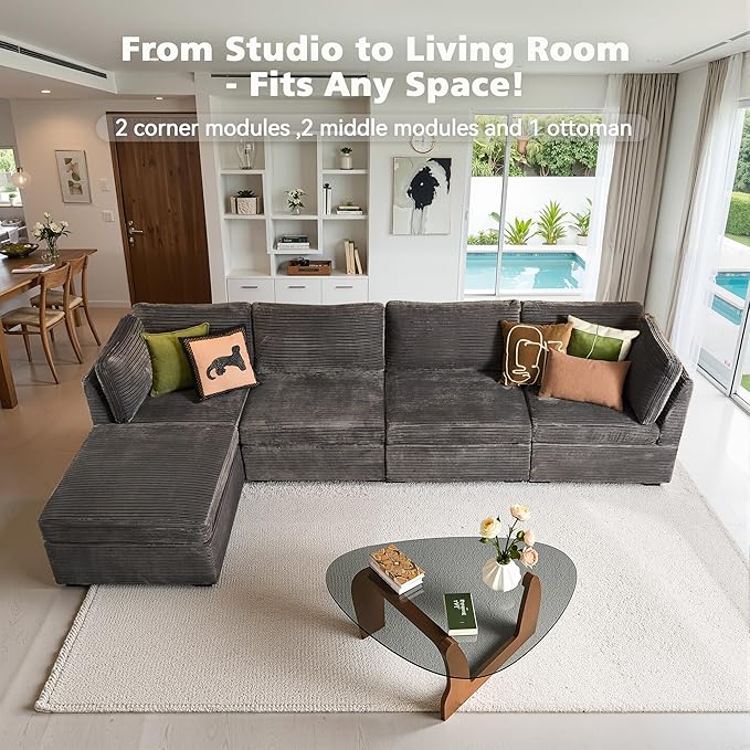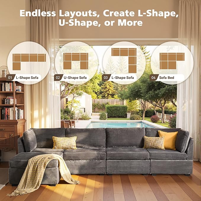 - Spacious Furniture:Sturdy solid wood frame, high-end breathable Plush corduroy fabric, filled with high rebound sponge, making this modular sectional sofa beautiful and comfortable, it can be a perfect match for your living room, bedroom, home office, etc.