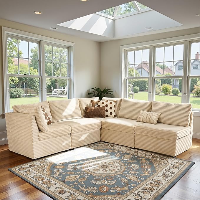 - Spacious Furniture:Sturdy solid wood frame, high-end breathable Plush corduroy fabric, filled with high rebound sponge, making this modular sectional sofa beautiful and comfortable, it can be a perfect match for your living room, bedroom, home office, etc.