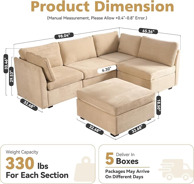 - Special Feature : DIY, Deep Seat, Modular, Plush Corduroy, Sectional